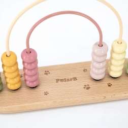 Pastelkleurige kralen op gedraaide banen motiveren kinderen om getallen te ontdekken, te sorteren en hoeveelheden te vergelijken – allemaal spelenderwijs.