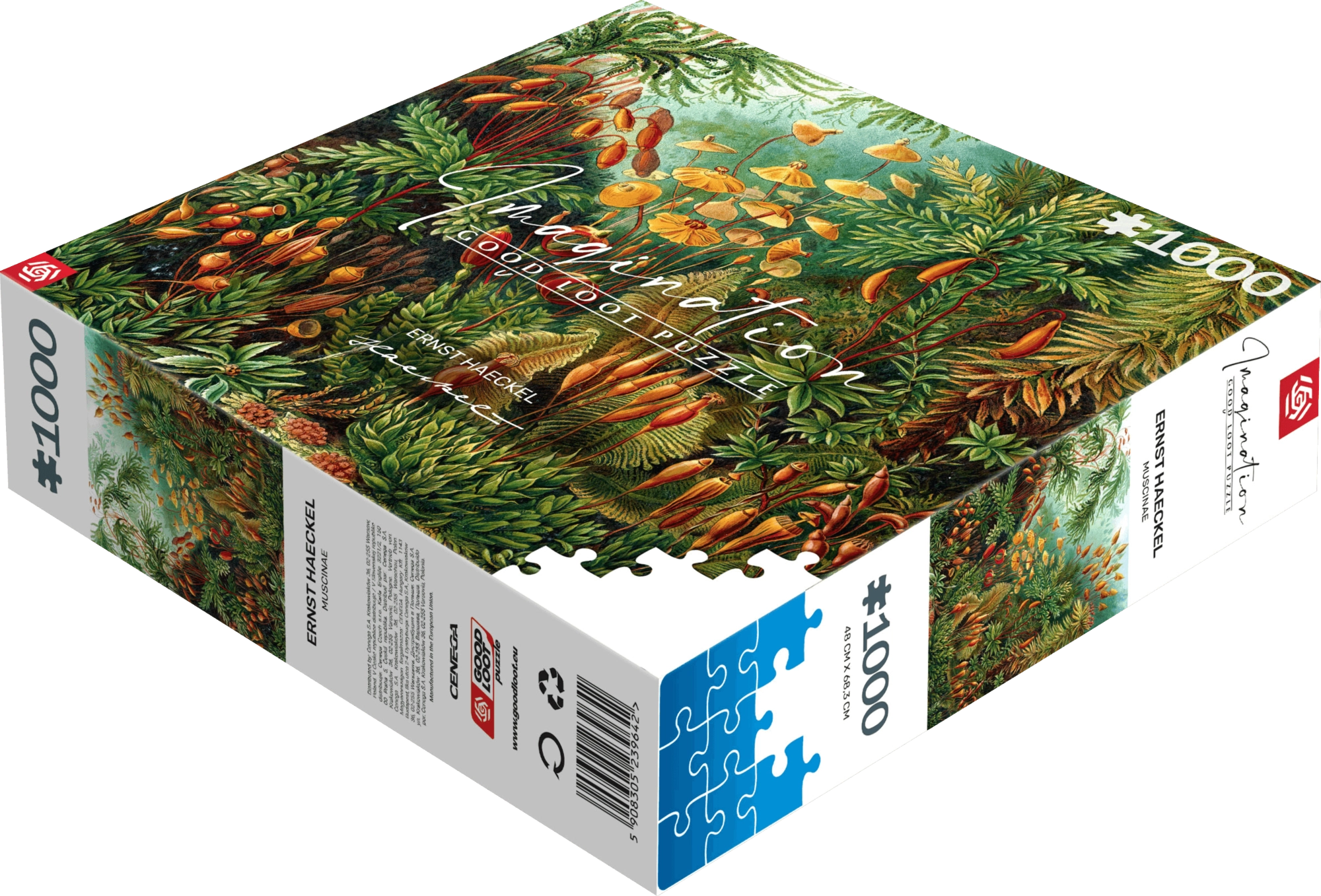 Geniet van een creatieve uitdaging met de puzzel Imagination: Ernst Haeckel - Muscinae, die uit maar liefst 1000 stukjes bestaat. Na voltooiing ontstaat een afbeelding van ongeveer 48 x 68,3 cm, die een fascinerend werk van de bekende illustrator Ernst Haeckel toont.
