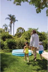 Je blaast het eenvoudig op, vult het en het plezier kan beginnen. Dankzij de compacte afmetingen is het zwembad geschikt voor kleinere tuinen en is het gemakkelijk op te bergen en te verplaatsen.