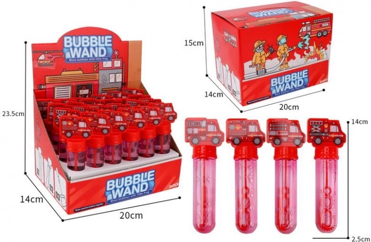 Ontdek de wereld van bellen met de Bellenblaas Brandweerauto met een grootte van 14 cm, ideaal voor kinderspel en het opvrolijken van een kinderachtige dag. Elk flesje van 2,5x2,5x14 cm brengt eindeloze mogelijkheden van belplezier.