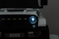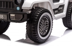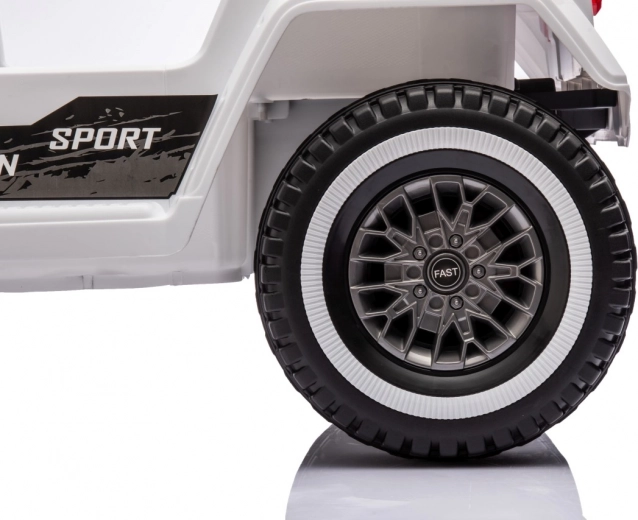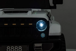 Het voertuig doet qua design denken aan een echte offroad-jeep, inclusief details zoals zijspiegels, koplampen en een frontgrille.