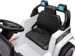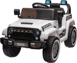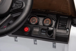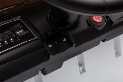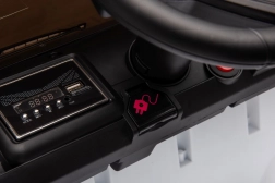De veiligheid wordt gegarandeerd dankzij veiligheidsgordels en een afstandsbediening met drie snelheden en een noodknop Stop. Kinderen zullen de LED-verlichting en de openslaande deuren waarderen, die een echte auto nabootsen. Het voertuig is ook uitgerust met een interactief audiopaneel met MP3, SD-kaart, AUX en USB-ingang.
