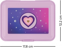Zoek je een praktische én stijlvolle manier om de snacks van je kinderen vers en veilig afgesloten te houden? Onze broodtrommel met paarden- en hartjesmotief is precies wat je nodig hebt. Met afmetingen van 17,8 cm in lengte en 12,2 cm in breedte biedt hij voldoende ruimte voor alle favoriete lekkernijen. Voorzien van een scheidingsschot, zodat je verschillende etenswaren apart kunt bewaren.