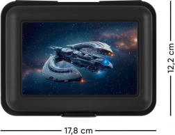 De broodtrommel met ruimteschipthema is er voor alle liefhebbers van de ruimte. Deze zwarte doos is niet alleen stijlvol, maar ook praktisch:
