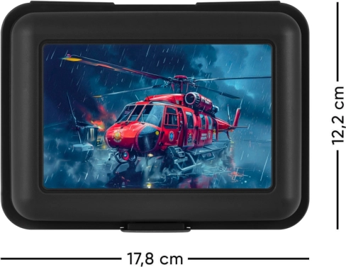 Het ontwerp van deze box staat voor eenvoud en functionaliteit. De hoofdafbeelding van de helikopter op het deksel geeft een speelse uitstraling, waardoor je kleintjes hun lunch graag meenemen naar school of op uitstapjes. Bovendien is het een ideale keuze voor alle luchtvaartliefhebbers.