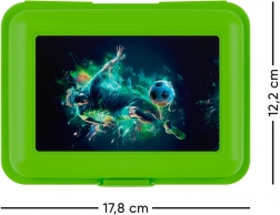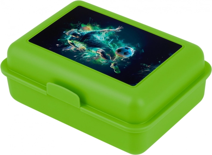 Geniet van comfort en stijl met deze plastic lunchbox, versierd met een dynamisch voetbalthema. Ontworpen voor maximale functionaliteit en esthetiek: