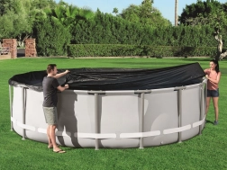 Universeel afdekzeil Bestway is de perfecte bescherming voor uw zwembad met een constructie van een diameter van 488 cm of van het type Hydrium 460 cm. Dit afdekzeil beschermt het zwembad tegen insecten, vogels, bladeren en lichte regen terwijl het ook thermische isolatie toevoegt.