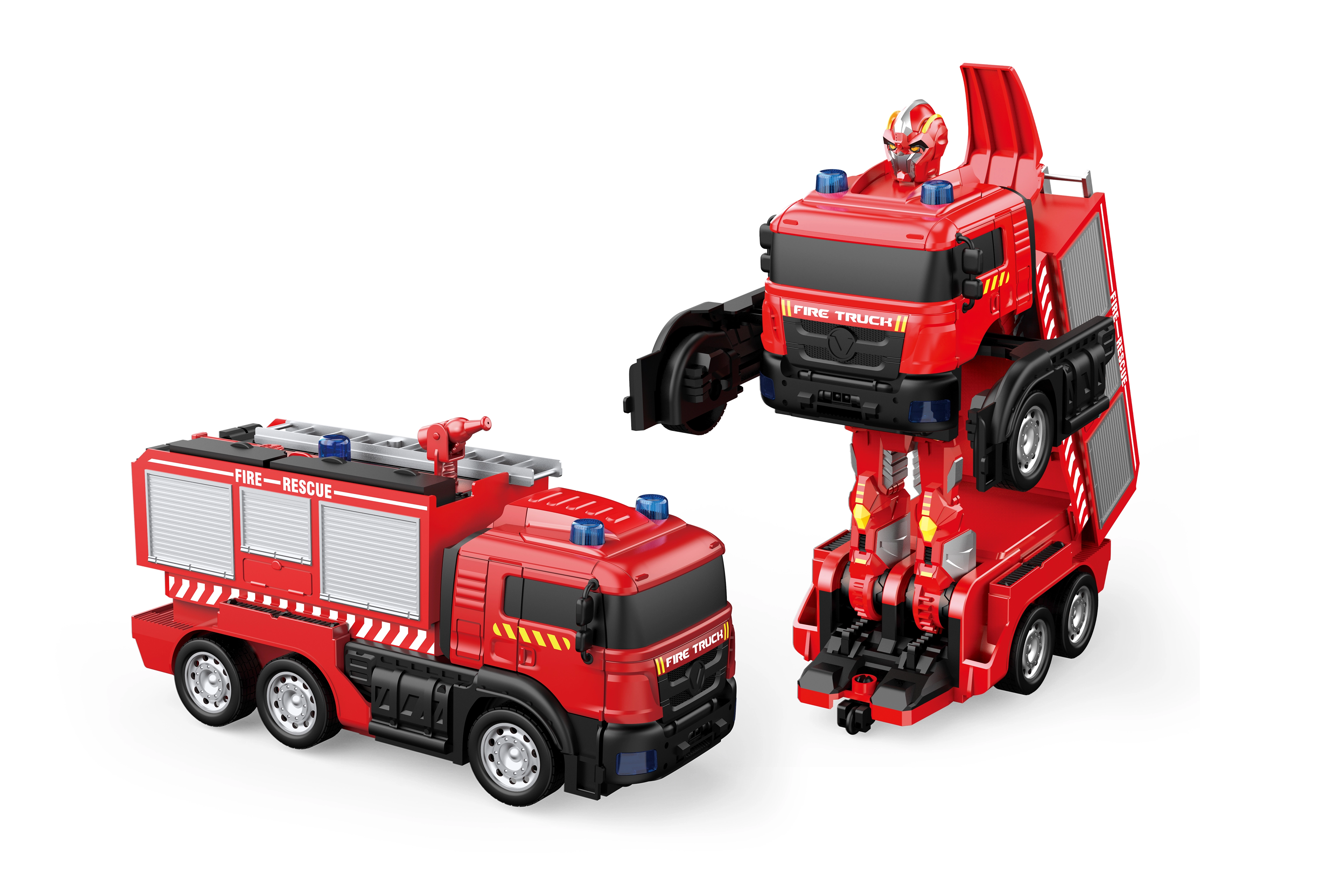 Met een eenvoudige druk op de knop verander je de robot in een brandweerwagen en terug. Kinderen genieten van een vloeiende, snelle moduswisseling en meer speelmogelijkheden.
