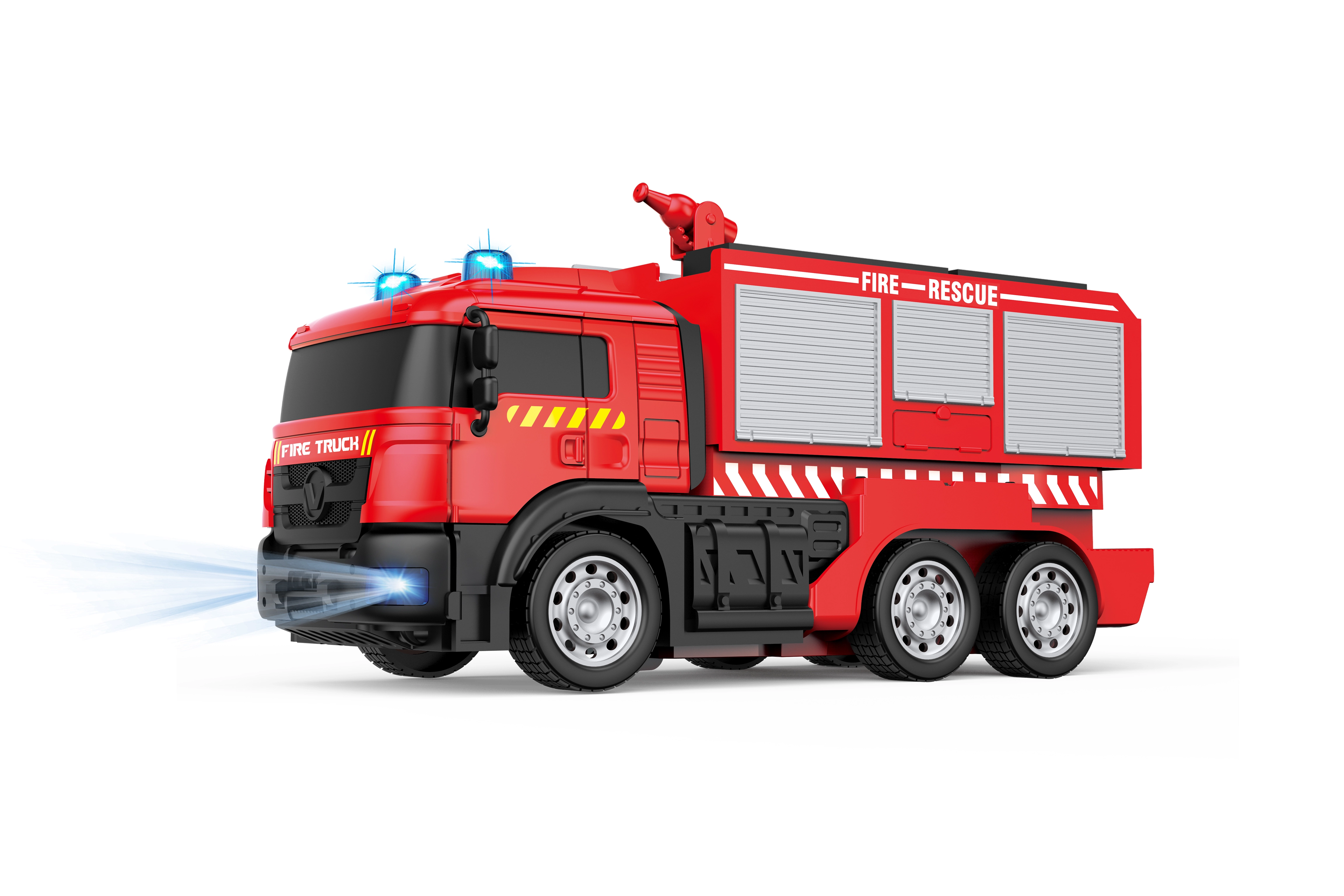 De watertank bevindt zich in het achterste deel van het dak. Door op het baken te drukken activeer je het waterkanon en beleef je realistisch bluswerk tijdens reddingsmissies.