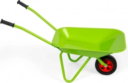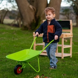 Dankzij het ergonomische ontwerp met twee handvatten en een stevig rubberen wiel is de kruiwagen gemakkelijk te hanteren, zelfs voor kleine kinderen.