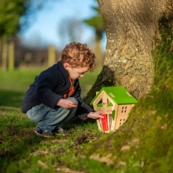 Het huisje is gemaakt van FSC®-gecertificeerd hout en geverfd met niet-giftige verf.