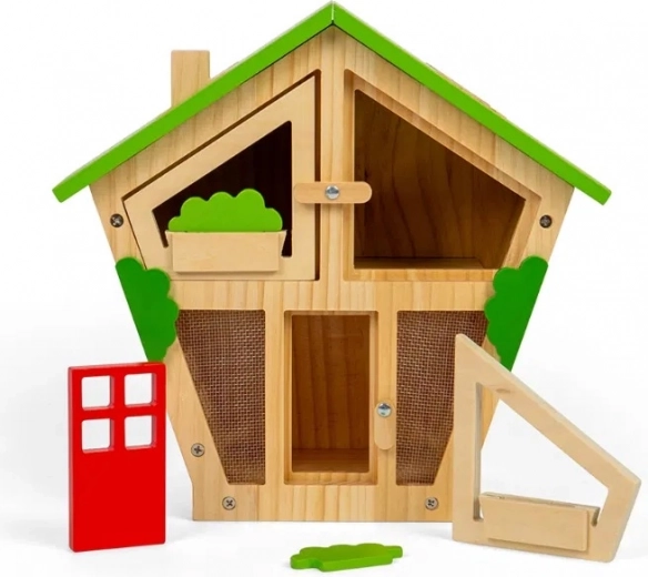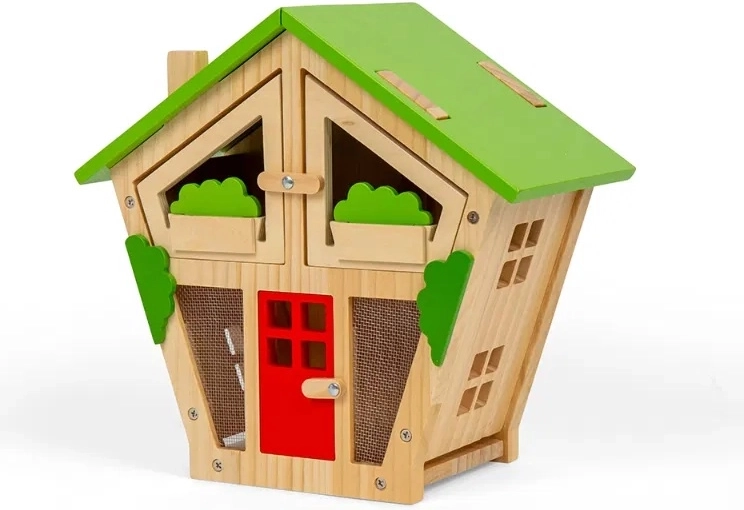 Het insectenhuisje biedt kinderen de mogelijkheid verschillende soorten insecten te observeren en veel interessante feiten over hun leven te ontdekken. Kindvriendelijk ontwerp omvat een afneembaar dak, deuren en ramen, zodat kinderen eenvoudig naar binnen kunnen kijken en de kleine bewoners kunnen bekijken.