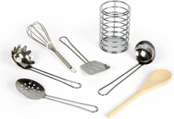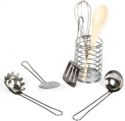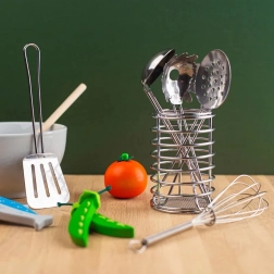 De set wordt geleverd in een praktische cilindervormige houder, wat het hanteren en opbergen gemakkelijk maakt. Kinderen kunnen kloppen, roeren en serveren als echte koks, wat hun fijne motoriek en oog-handcoördinatie ontwikkelt. Gemaakt van kwaliteitsmaterialen; het gerei is ook veilig en met niet-giftige verf afgewerkt.
