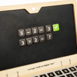 De perfecte speelgoedset voor kleine leerlingen: de houten magnetische laptop helpt kinderen lezen, schrijven en rekenen te ontwikkelen via interactief spel. Er is een magnetisch scherm met afneembare cijfers en symbolen, evenals krijt voor eigen creatieve tekeningen. Dit product stimuleert schermvrij, fantasierijk spel, wat bijdraagt aan betere concentratie.