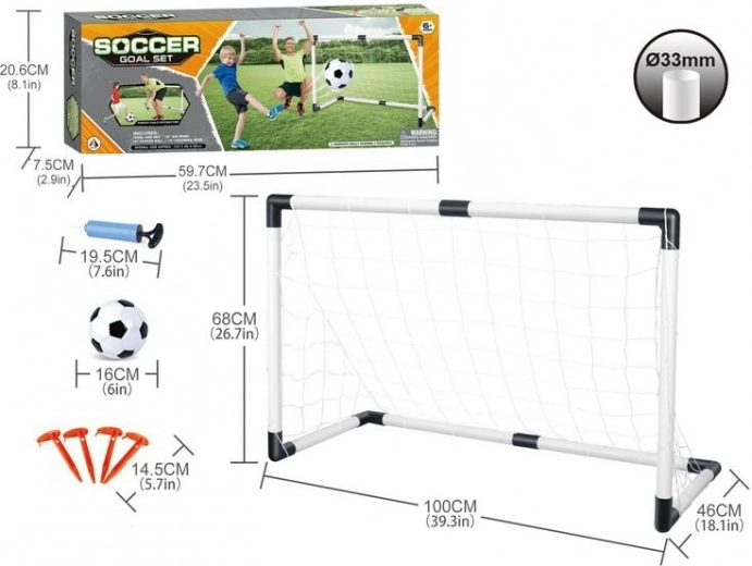 Voetbalset voor kleine en grote spelers, inclusief een opvouwbaar doel en een bal. Een geweldige aanvulling voor alle voetbalfans, ideaal om in de tuin of in het park te spelen.