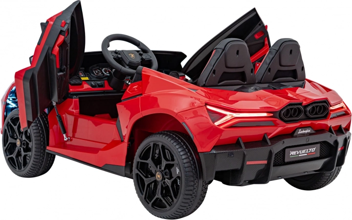 Dit model, geïnspireerd op de LAMBORGHINI Revuelto supercar, biedt kinderen een authentieke rijervaring. Dankzij de krachtige 4x200 W aandrijving en de 24V/7Ah accu levert hij een soepele start, rijden vooruit/achteruit en twee snelheden. Zachte EVA-banden in combinatie met achterschokdempers zorgen voor een stille en comfortabele rit op verschillende ondergronden.