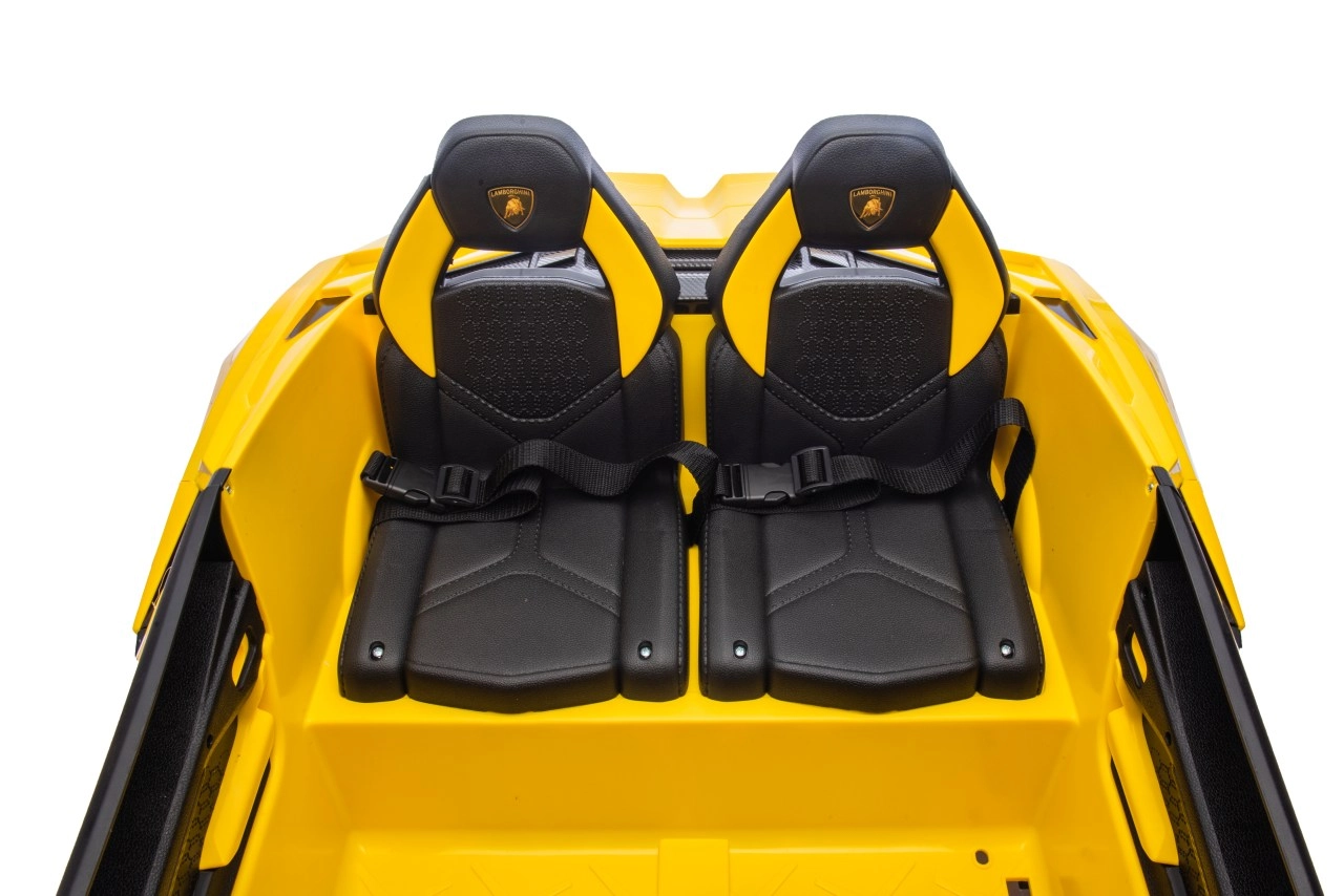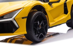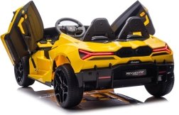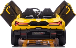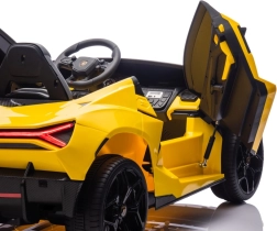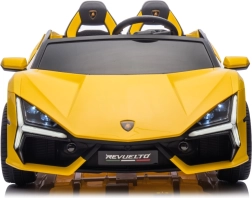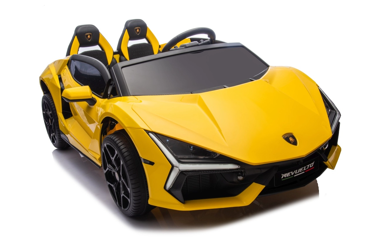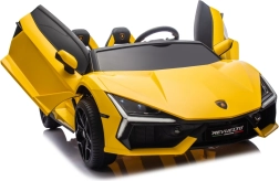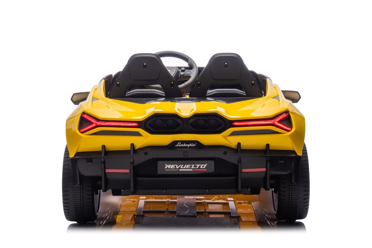 Het model LAMBORGHINI Revuelto XL blinkt uit door zijn realistische look met omhoog scharnierende deuren, comfortabel onderstel met achterdempers en stille EVA-wielen 24×9 cm. Kinderen waarderen de soepele soft start, keuze uit twee snelheden en rijden vooruit/achteruit, terwijl ouders volledige controle hebben dankzij de afstandsbediening met STOP-knop.