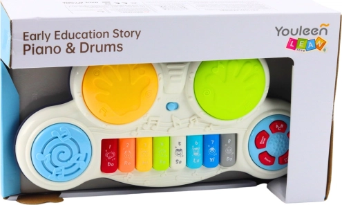 Ontdek de wereld van muziek met de interactieve piano met trommels, die plezier en leren samenbrengt. Acht toetsen spelen melodieën en dierengeluiden af, terwijl een paar aanraak-trommels kinderen aanmoedigt om ritme te verkennen. Zachte LED-verlichting creëert een aangename sfeer en motiveert tot verder spelen.