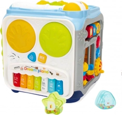 Deze interactieve activiteitenkubus is ontworpen om het zintuiglijk waarnemen, de fijne en grove motoriek en het logisch denken van kinderen te ontwikkelen. Dankzij de brede reeks functies nodigt hij uit tot verkennen, bevordert hij concentratie en oog-handcoördinatie, en motiveert hij tot zelfstandig en samen spelen.