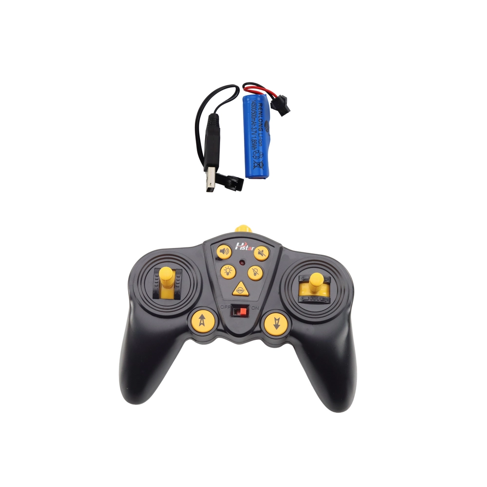 Afstandsbediening op 27 MHz voor stabiele en storingsvrije besturing van de graafmachine. In de set zit een accu met USB-oplaadmogelijkheid.