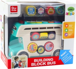 De bus is ontworpen met openingen voor blokken met letters die op de juiste plaatsen kunnen worden gestoken, wat de observatievaardigheden en precisie van bewegingen van uw kinderen bevordert. Aan de zijkanten zijn draaiende wielen en interactieve elementen voor extra zintuiglijke prikkels en aanmoediging tot actieve betrokkenheid.