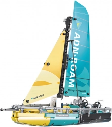 Dit zeilbootmodel bootst een modern vaartuig na met realistische zeilen, een roer en een mechanisme voor het spannen van lijnen. De dynamische kleurcombinatie en verfijnde details maken het model uitzonderlijk en het past perfect in elke modelverzameling.