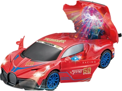 Sportauto met LED-bol, 360° rotatie en geluiden – rood