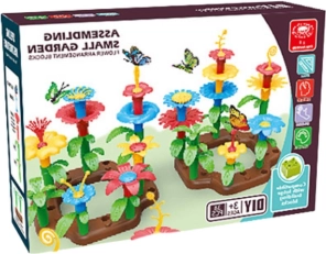 Ontdek creatieve vreugde met de Bloementuin DIY-constructieset met 148 onderdelen, waarmee kinderen hun eigen kleurrijke composities kunnen maken. Dankzij het eenvoudige in elkaar zetten en het duurzame materiaal kunnen jonge makers naar hartenlust knoppen, blaadjes, stelen en bloemen combineren en zo de fijne motoriek, het logisch denken en het leren van kleuren en vormen ontwikkelen.