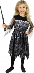Dit heksenkostuum is een ideale keuze voor meisjes van 4-6 jaar (lengte 105-116 cm). Het kostuum bestaat uit een zwarte jurk met zilverkleurig spinnenweb, wat een mysterieuze en magische uitstraling geeft. Het is ontworpen voor draagcomfort en onbeperkte bewegingsvrijheid.