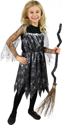 Zwarte jurk met spinnenwebpatroon, ideaal voor kleine heksen die willen opvallen tijdens Halloween-feesten.