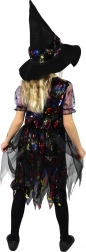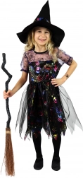Dit kinderheksenkostuum is ideaal voor kleine dames die dromen van een magische Halloween of carnaval. Het kostuum is gemaakt van hoogwaardig textielmateriaal en biedt niet alleen een geweldige look, maar ook comfort tijdens het dragen. Qua maat geschikt voor kinderen van 4 tot 6 jaar met een lengte van 105-116 cm.