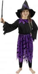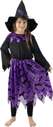 Op zoek naar het perfecte kostuum voor jouw kleine heks? Dit kinder heksenkostuum brengt magie en fantasie in elk spel. Het kostuum bestaat uit een jurk en een puntige hoed met strik, allemaal in een aantrekkelijk zwart-paars design met vleermuispatronen. Geschikt voor meisjes in maat M, leeftijd 6-8 jaar (117-128 cm). Het kostuum is licht en comfortabel, waardoor het veel bewegingsvrijheid biedt.