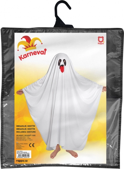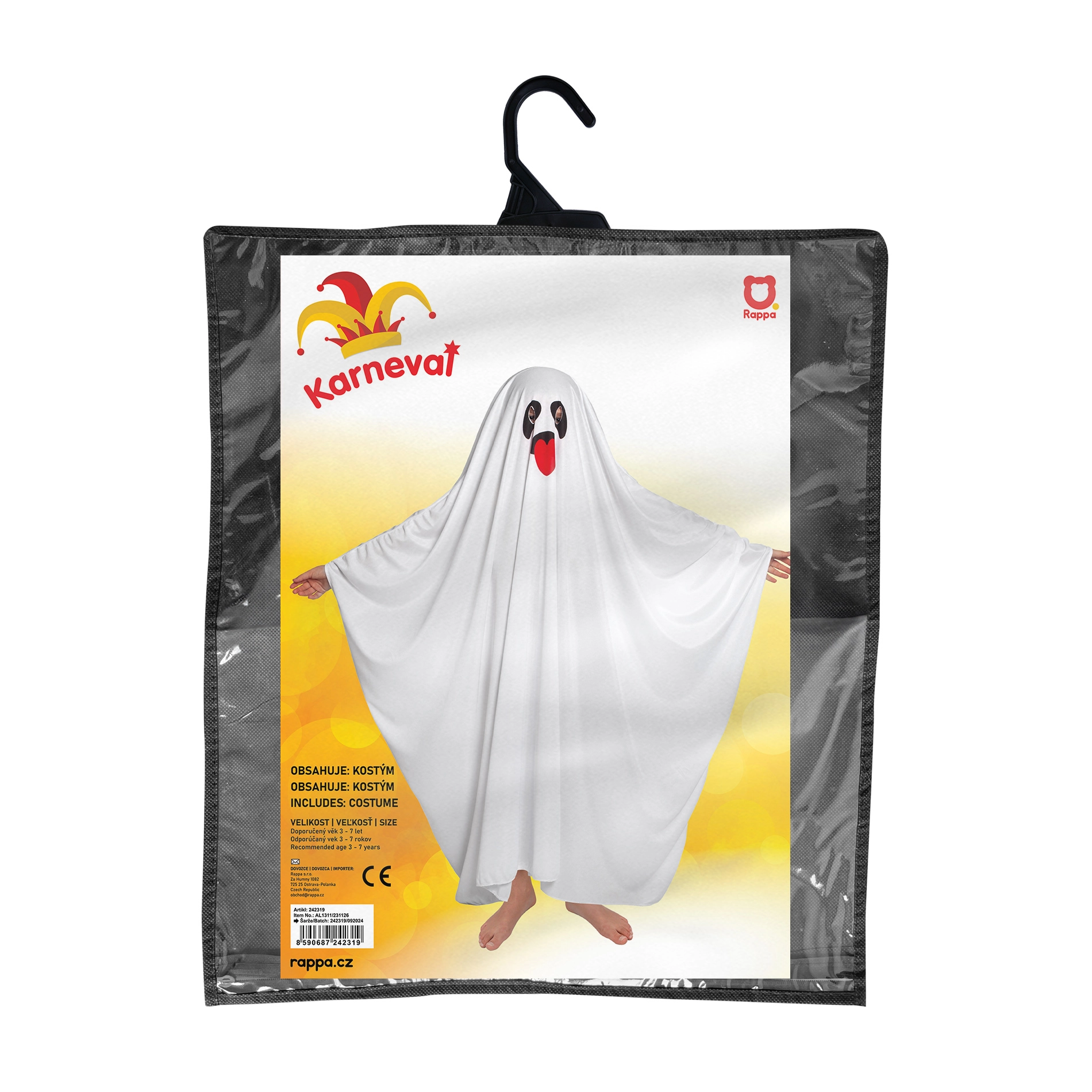 Een schattig en griezelig spookkostuum voor kinderen van 3–7 jaar, perfect voor Halloween, carnaval en schoolfeestjes. Gemaakt van licht materiaal, met een comfortabele pasvorm en openingen voor de ogen voor een veilig zicht. Universele witte mantel met gezichtprint en lengte ca. 106 cm vanaf het hoofd, geschikt voor jongens en meisjes.