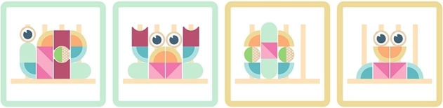 Dubbelzijdige voorbeeldkaarten begeleiden kinderen stap voor stap en motiveren hen om kleuren en vormen te herkennen en complexere patronen te leggen.