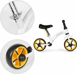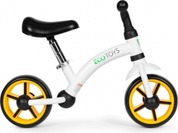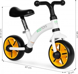 De ECOTOYS-loopfiets is een uitstekende keuze voor de eerste stappen naar zelfstandig rijden. Dankzij het lage gewicht en het slimme ontwerp trainen kinderen op natuurlijke wijze balans, coördinatie en zelfvertrouwen, wat de overstap naar een klassieke fiets vergemakkelijkt. Het poedergecoate stalen frame garandeert een lange levensduur en een moderne look, EVA-wielen zijn stil, duurzaam en hoeven niet te worden opgepompt.