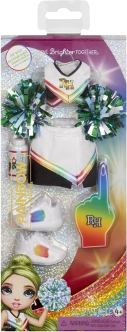 De kledingset voor Rainbow High-poppen biedt een breed scala aan stijlen die elke jonge modeontwerpster aanspreken. Stel je pop voor als ballerina, klaar voor een dag bij het zwembad of een feestje. De mogelijkheden zijn eindeloos, waaronder schaatsen of het aanmoedigen van een sportteam.