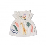 Geef je pop een stijlvolle zomeroutfit. Het witte jurkje met kleurrijke jungle-motieven en een schattige giraffe heeft een luchtige pasvorm, zachte volants aan de mouwen en is gemakkelijk aan te trekken. Perfect voor fantasierijk, gevarieerd en langdurig spel.