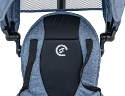 De zachte zitting zorgt voor comfort en de drievoudige veiligheidsgordels met beschermende elementen bieden veiligheid voor uw kind tijdens het rijden.
