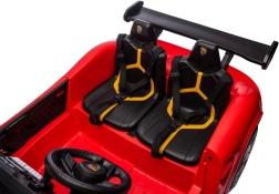 De rode elektrische 4x4 kinderauto vervult de droom van elke jonge autoliefhebber. Dankzij realistische elementen zoals gevormde carrosserie, gedetailleerde wielen en een geloofwaardig interieur met twee zitplaatsen oogt hij als een echte sportwagen. Openslaande deuren maken het instappen gemakkelijk en versterken de authentieke rijbeleving.