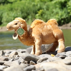 Deze pluchen kameel valt op door het zachte, aangename materiaal en de gedetailleerde afwerking, waardoor hij bijna levensecht oogt. Dankzij de veilige vulling van gerecyclede PET‑flessen is het een milieubewuste keuze en geschikt voor de allerkleinsten.