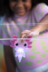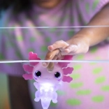 Badderen of spelen bij de wasbak verandert in een magische show – de axolotl licht op na onderdompeling en betovert kinderen met zijn kleuren.