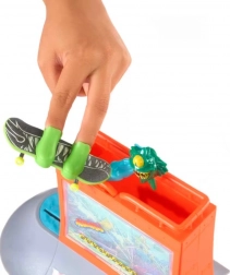 Het Hot Wheels Skate Aquarium skatepark biedt geweldige hindernissen en een leuk aquariumbeslag met een piranha. Het is uitgerust met een volledig gemonteerde fingerboard en afneembare schoenen die kleine rijders helpen om de controle over de board te behouden bij het leren van trucs.