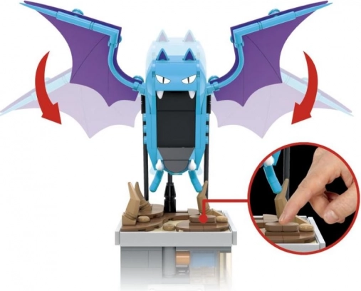Door op de geheime knop op de Golbat-figuur te drukken, zie je hoe zijn vleugels bewegen, wat de bouwset een interactief karakter geeft.