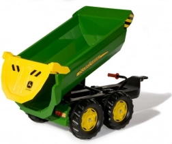 De JOHN DEERE kinderaanhanger van ROLLY TOYS halfpipe is ontworpen voor realistisch boerderijspel. Dankzij de dubbele as is hij uitzonderlijk stabiel, heeft hij een grote bak voor het vervoeren van materiaal en een te openen achterklep voor eenvoudig lossen. Duurzame kunststof en de iconische JOHN DEERE-kleuren zorgen voor een lange levensduur en een aantrekkelijke uitstraling.