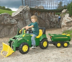 Koppel de aanhanger in een handomdraai aan elke ROLLY TOYS traptractor met trekhaak en breid het speelplezier binnen en buiten uit.