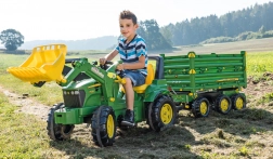 Laat de fantasie op volle toeren draaien met de robuuste traptractor JOHN DEERE 7930. Zorgvuldig uitgewerkte details, een te openen motorkap met opbergruimte en een voorlader voor het scheppen van zand of bladeren maken dit model tot een ideale keuze voor actief spelen buiten en binnen.