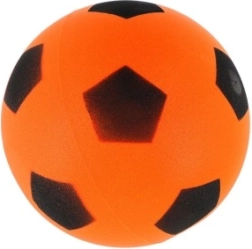 Het klassieke voetbalpatroon in oranje en geel motiveert tot spelen en zorgt voor goede zichtbaarheid van de bal in beweging.