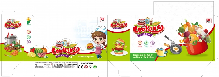 De set heeft afmetingen van 27,5 x 25,5 x 7,5 cm, wat hem ideaal maakt voor kleine kinderhanden en bovendien compatibel met de meeste speelgoedkeukens.