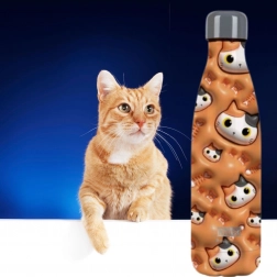 Stijlvolle thermosfles met een oranje kattenmotief die dranken lang warm of koud houdt. Dankzij de compacte afmetingen is hij ideaal voor onderweg, naar het werk en naar school. Inhoud 500 ml, licht van gewicht en praktische vorm voor comfortabel vasthouden.