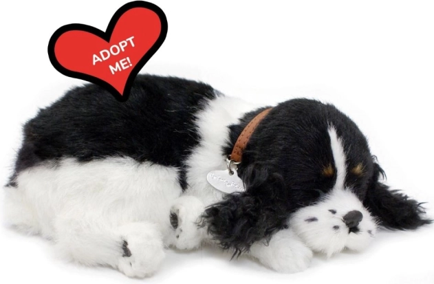Maak kennis met onze geweldige pluchen hond in de vorm van een cocker spaniel, die niet alleen op een echte hond lijkt, maar ook een ademfunctie heeft die het gevoel van een echt huisdier oproept.